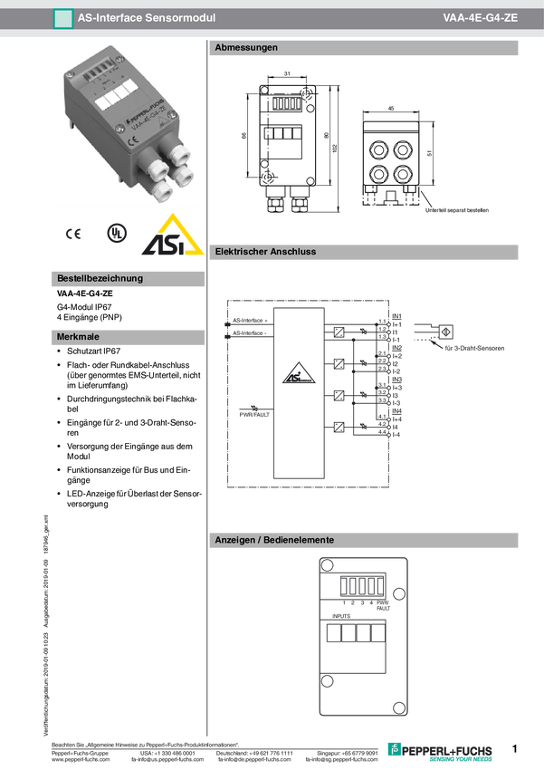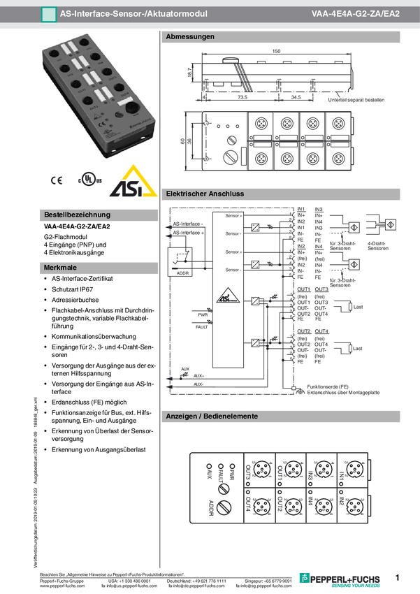 Rozdzielacz czujnik / element wykonawczy, aktywny Pepperl+Fuchs VAA-4E-G4-ZE 187946 1 szt.