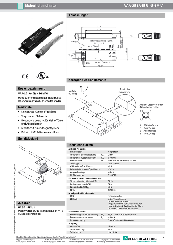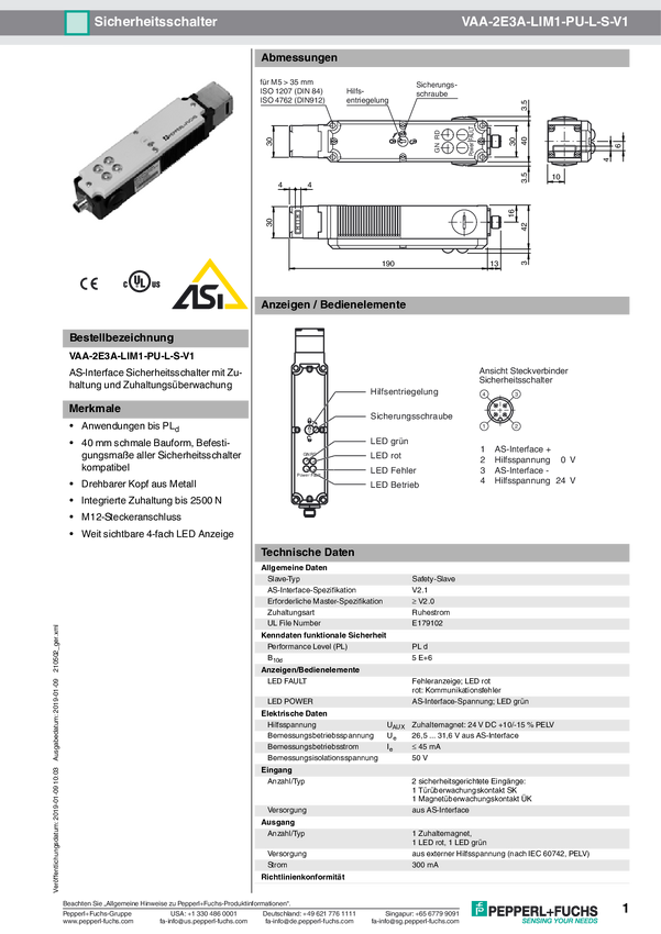Pepperl+Fuchs 210504 VAA-2E3A-LIM1-PL-L-S-V1 Wyłącznik krańcowy 1 szt.