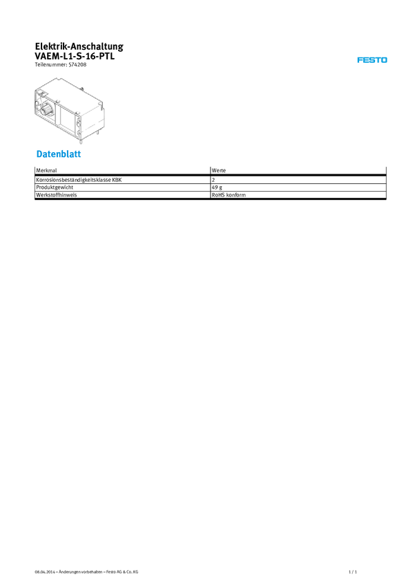 Akcesorium FESTO VAEM-L1-S-16-PTL 574208 1 szt.