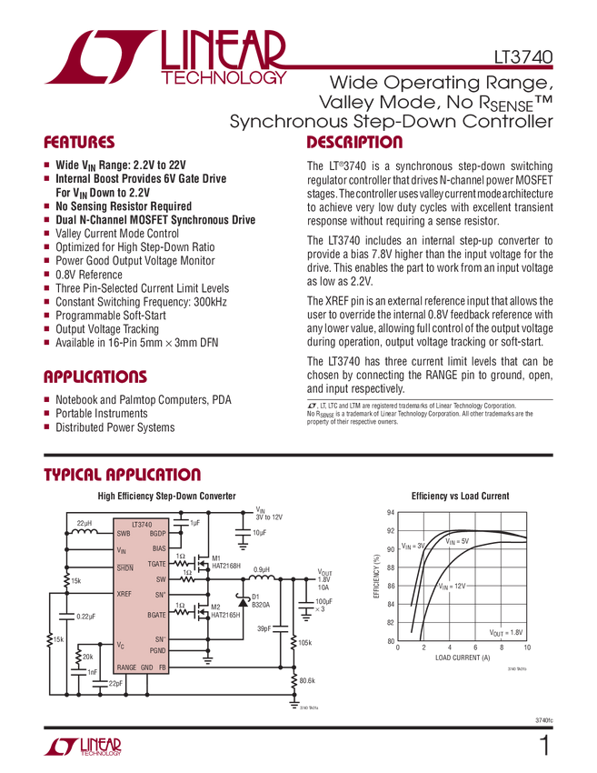 Wide Operating Range, Valley Mode, No R Synchronous Step-Down Controller