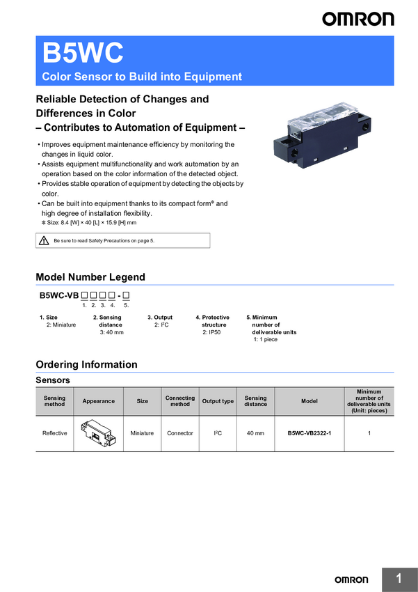 Czujnik koloru Omron B5WC-VB2322-1 B5WC-VB2322-1 1 szt.