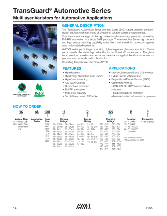 Var 6.4VAC 9VDC 40A 12.7V 0805 SMD T/R