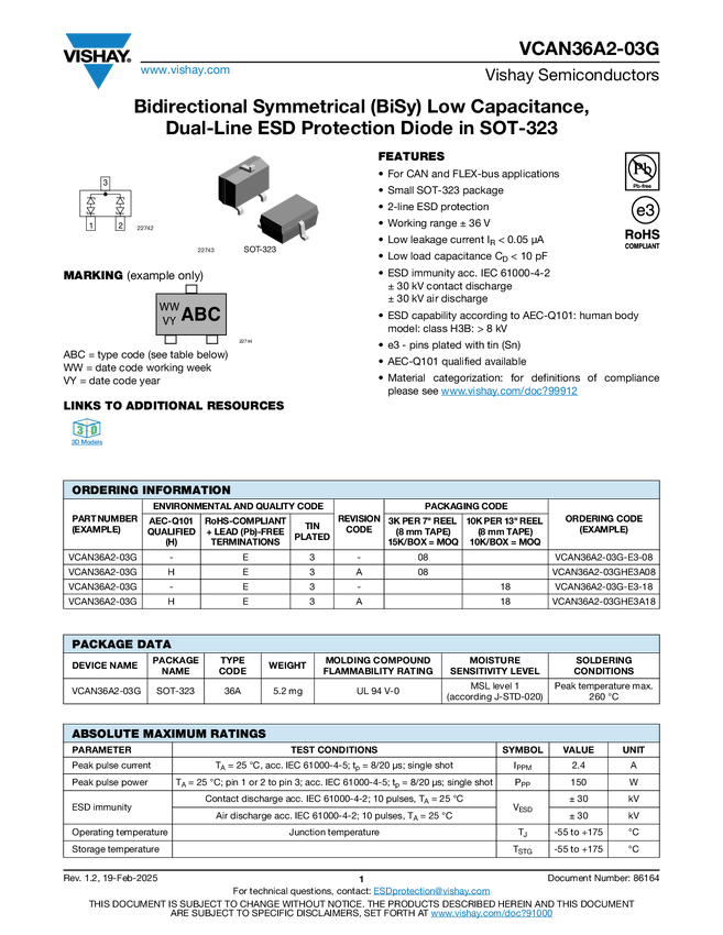 Bidirectional Symmetrical (BiSy) Low Capacitance, Dual-Line ESD Protection Diode in SOT-323