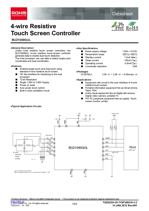 Sensor Controller Resistive 4-CH Serial 50-Pin VCSP Embossed Carrier T/R