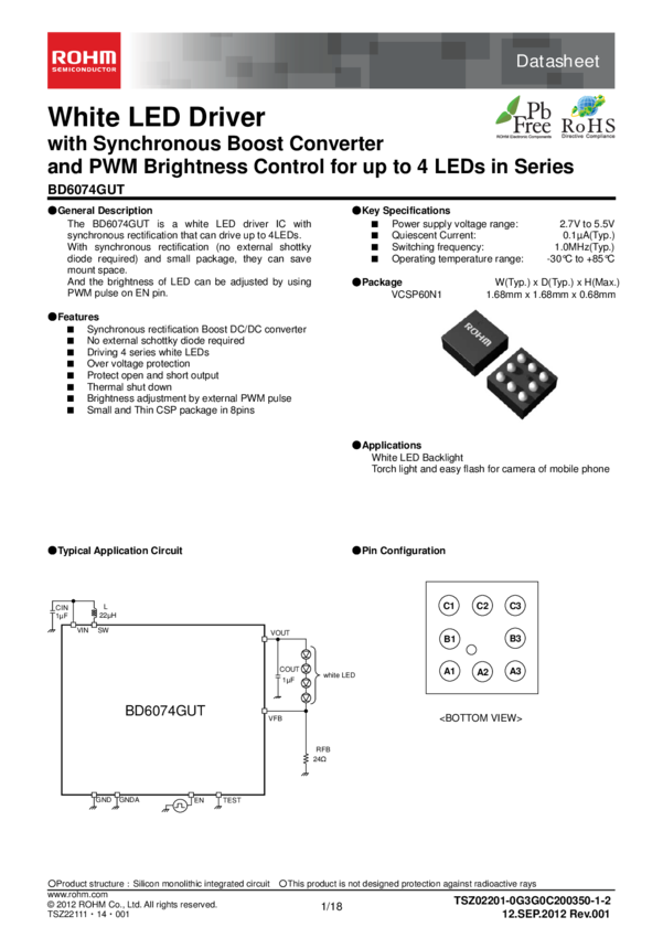 LED DRVR Boost 1-CH PWM 18V 0.03A 8-Pin VCSP60N1 Embossed T/R