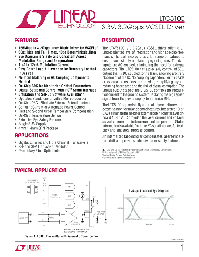 3.3V, 3.2Gbps VCSEL Driver
