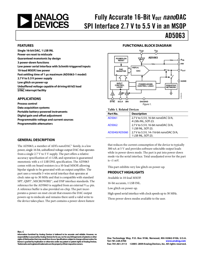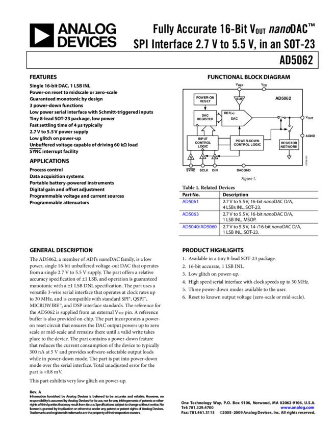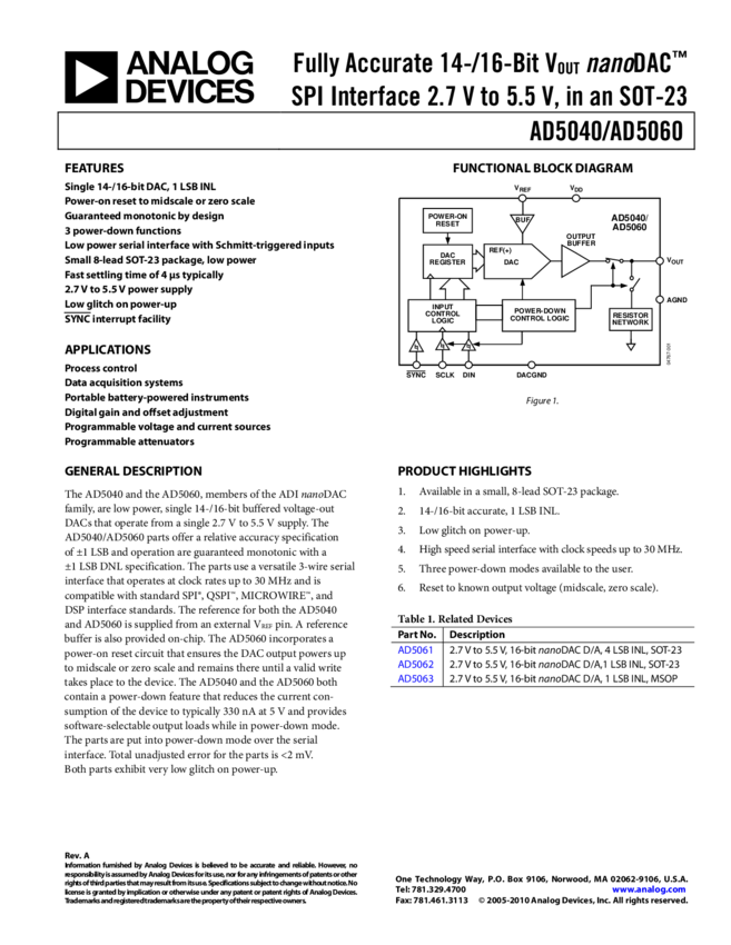2.7 V-5.5 V, Full Accurate 16-Bit VDAC Converter, Unbuffered, in a Sot 23
