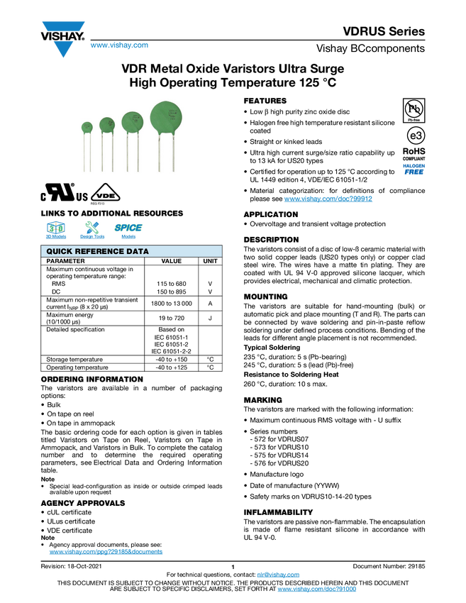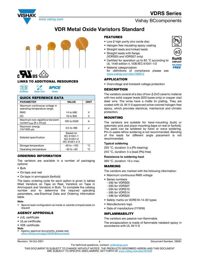 VDR Metal Oxide Varistors Standard