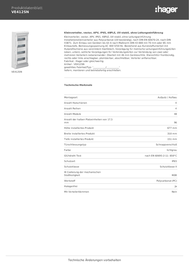 Rozdzielnica mała Hager VE412PN, 310 mm x 677 mm x 151 mm, 1 szt.