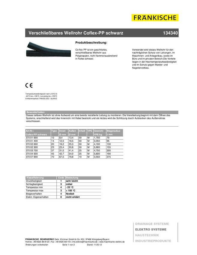 Fränkische Rohrwerke 37001003 Co-flex PP 10 (VE5m) Wąż czarny 8.4 mm 5 m