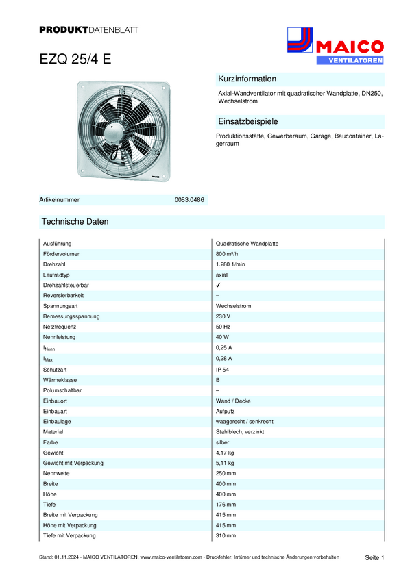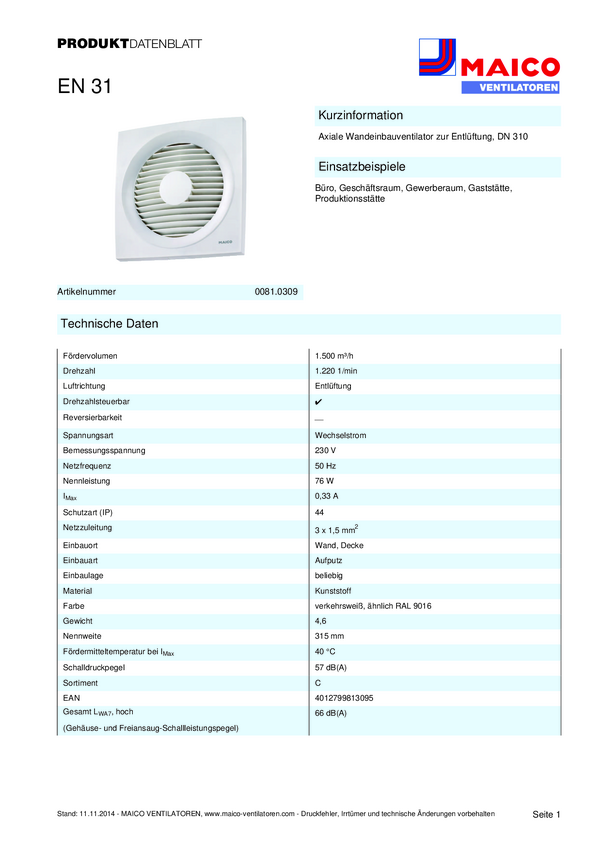 Wentylator ścienny i sufitowy Maico Ventilatoren EN 31 230 V 1500 m³/h 31.5 cm
