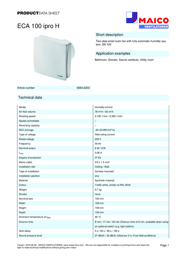 Wentylator ścienny i sufitowy Maico Ventilatoren ECA 100 ipro H 230 V 92 m³/h 10 cm