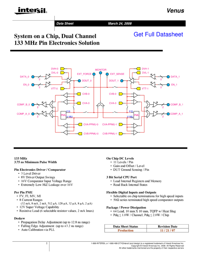 System on a Chip, Dual Channel 133 MHz Pin Electronics Solution