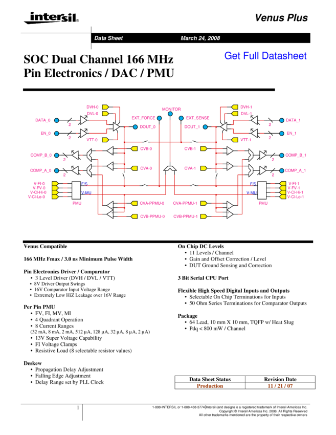 SOC Dual Channel 166 MHz Pin Electronics / DAC / PMU
