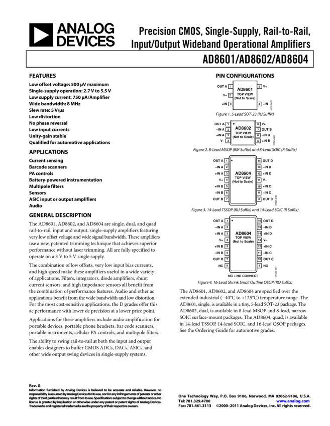 AD8602: DigiTrim™ R/R Input and Output Dual Op Amp with Very Low Offset Voltage