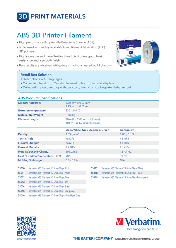 Verbatim 55010 ABS Filament Filament do drukarek 3D ABS 1.75 mm 1 kg czarny 1 szt.