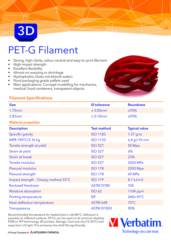 Filament do drukarek 3D PETG Verbatim 55057, Średnica filamentu: 1.75 mm, 1 kg, zielony (przezroczysty)