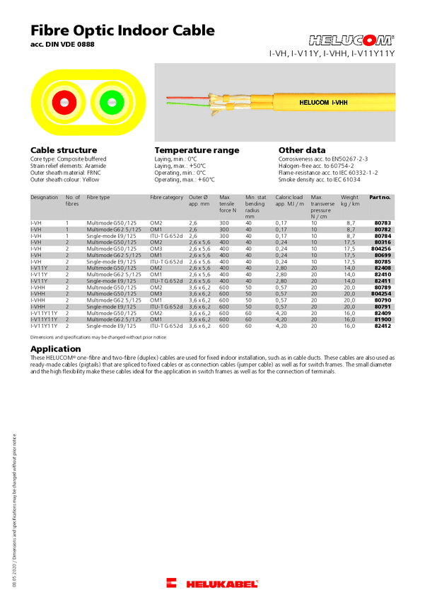Światłowód Helukabel I-VHH 2X1 G50/125 80789-100, 100 m
