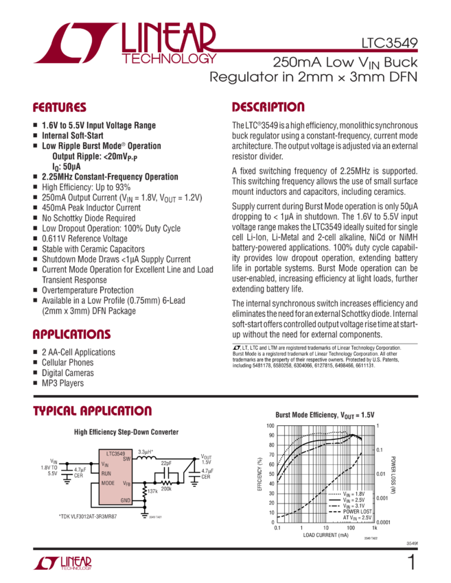 250mA Low VIN Buck Regulator in 2mm x 3mm DFN