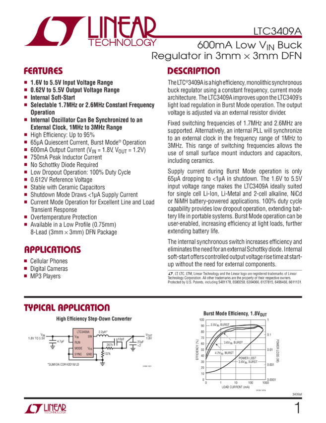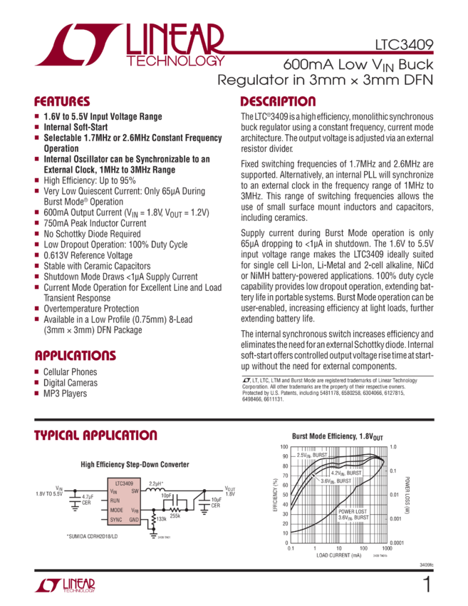 600mA Low VIN Buck Regulator in 3mm × 3mm DFN