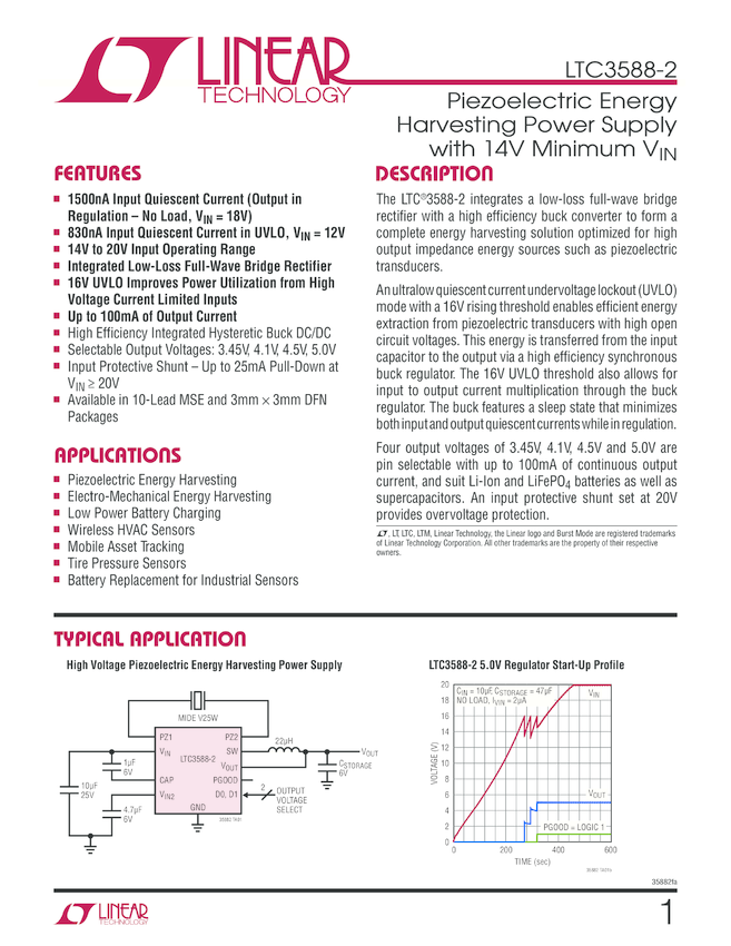 Piezoelectric Energy Harvesting Power Supply with 14V Minimum VIN