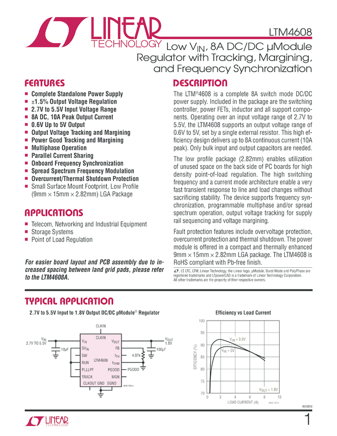 8A, Low VIN DC/DC uModule with Tracking, Margining, Multiphase and Frequency Synchronization