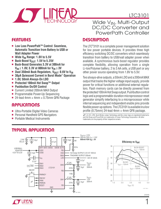 Wide VIN, Multi-Output DC/DC Converter and PowerPath Controller