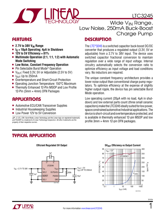 Wide VIN Range, Low Noise, 250mA Buck-Boost Charge Pump