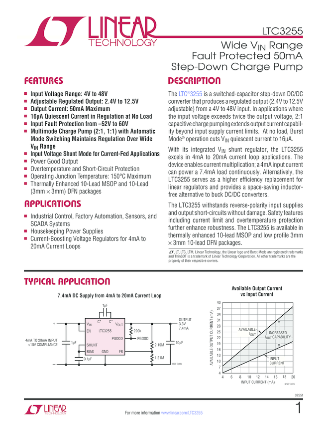 Wide VIN Range Fault Protected 50mA Step-Down Charge Pump