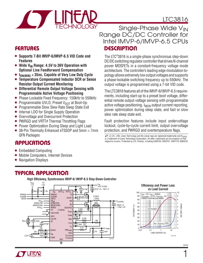 Single-Phase Wide VIN Range DC/DC Controller for Intel IMVP-6/IMVP-6.5 CPUs