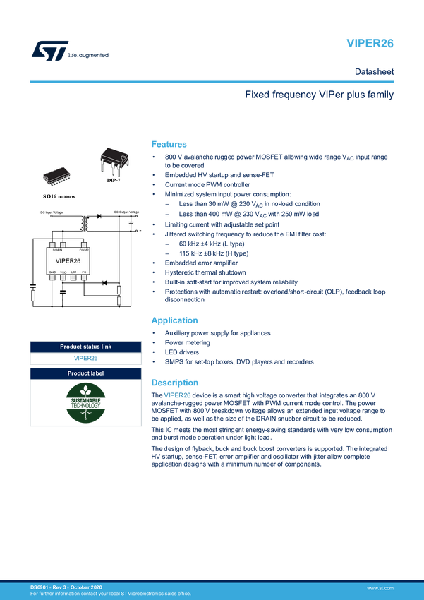 VIPerPlus family: Energy saving 12W high voltage converter with direct feedback