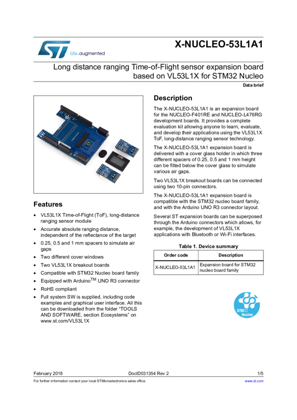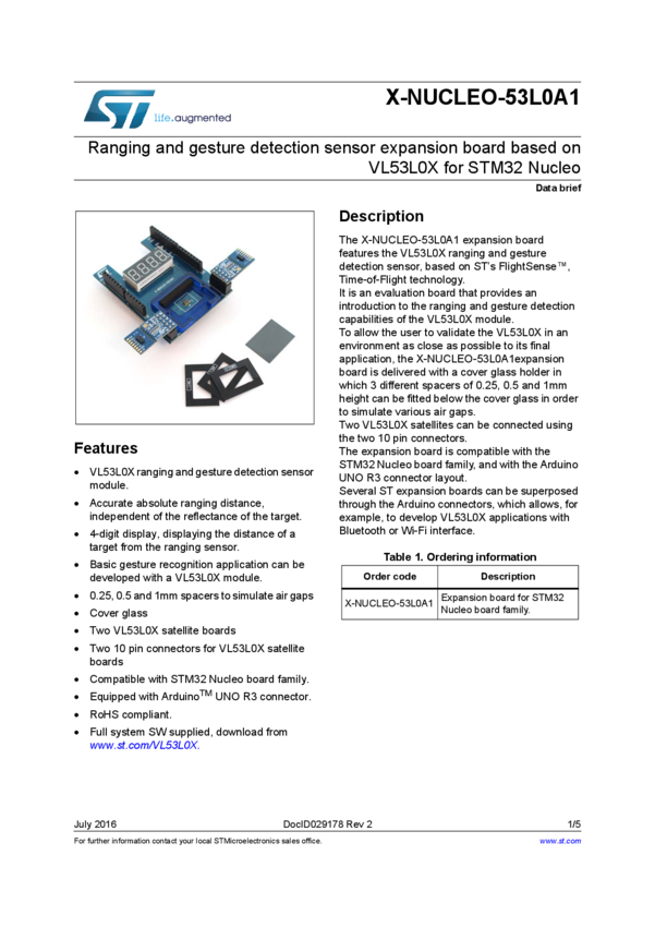 Ranging sensor expansion board based on VL53L0X for STM32 Nucleo