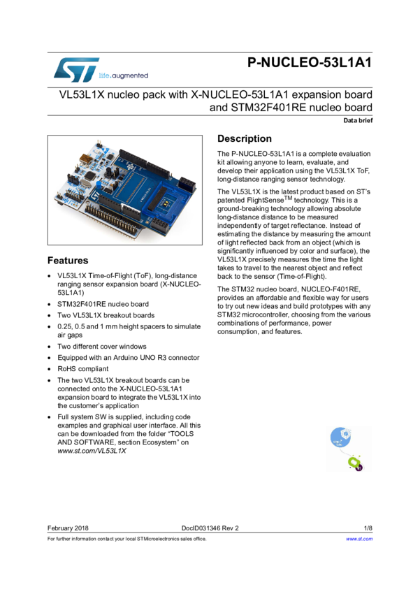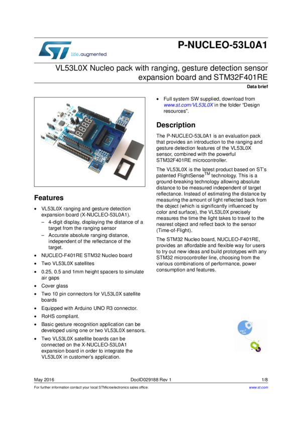 VL53L0X Nucleo Pack - Includes VL53L0X Expansion board and STM32F401RE Nucleo