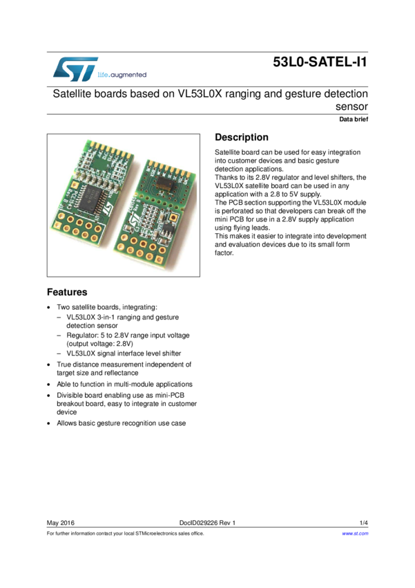 Satellite: mini-PCB with VL53L0X for easy integration into customers devices