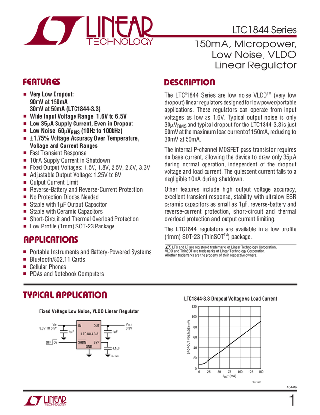 150mA, Micropower, Low Noise, VLDO Linear Regulator