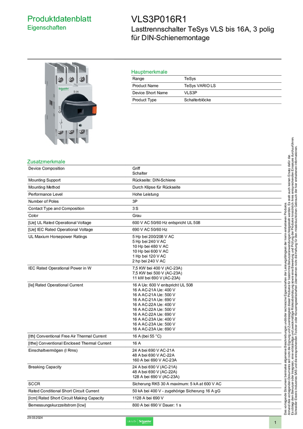 Schneider Electric VLS3P016R1 Rozłącznik 1 szt.