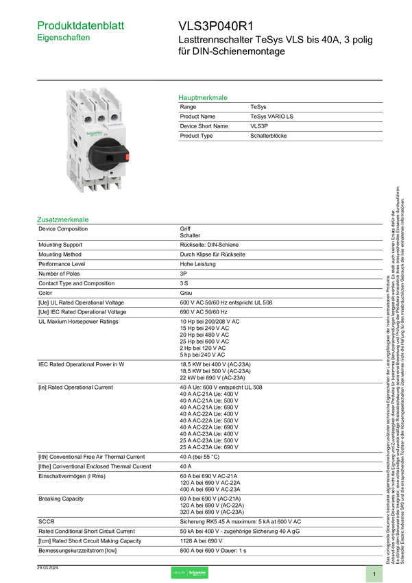 Schneider Electric VLS3P040R1 Rozłącznik 1 szt.