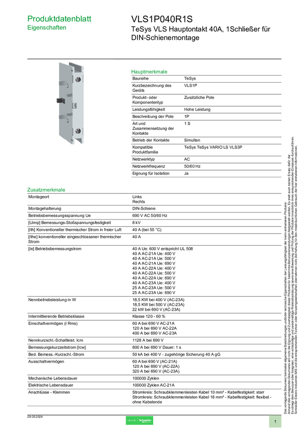 Schneider Electric VLS1P040R1S Akcesorium do wyłącznika mocy 1 szt.