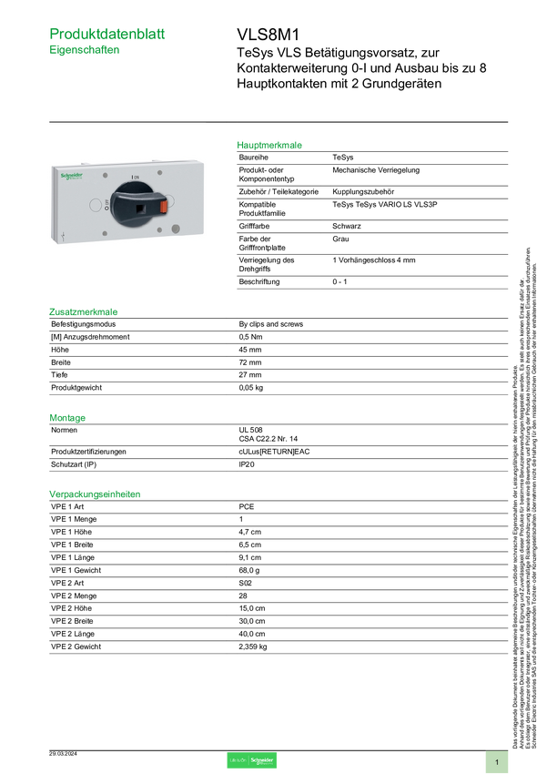 Schneider Electric VLS8M1 Akcesorium do rozłącznika 1 szt.