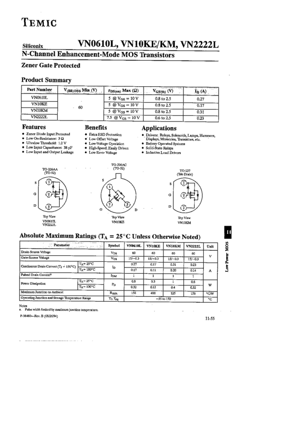 VN10K Datasheet - N-Channel Enhancement-Mode Vertical DMOS FET (06/27/2014)