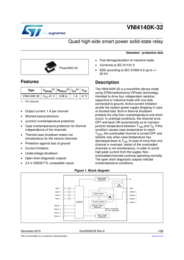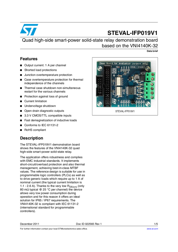 Quad high-side smart-power solid-state relay demonstration board based on the VNI4140K-32