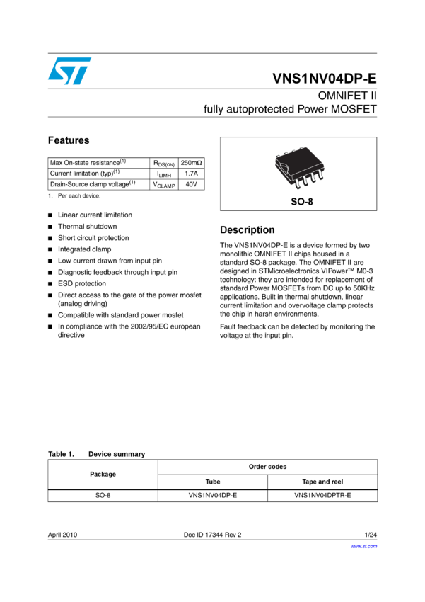Power Switch Lo Side 1.7A 8-Pin SO N T/R