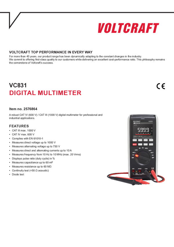 Multimetr VOLTCRAFT VC831 CAT III 1000 V, CAT IV 600 V Kalibracja (DAkkS)