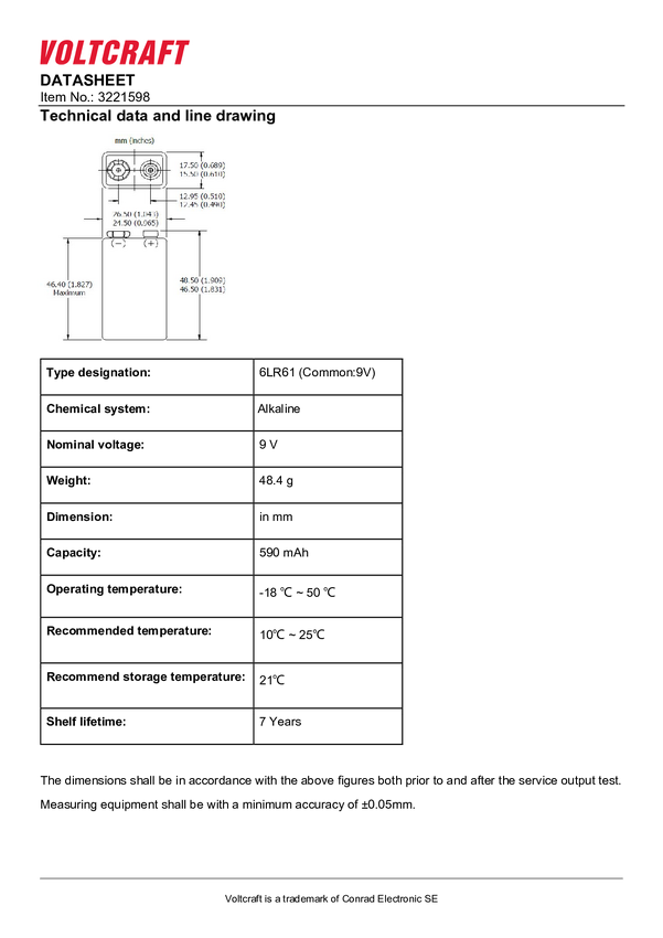 VOLTCRAFT VC-16107990 Bateria 9 V alkaliczno-manganowe 550 mAh 9 V 30 szt.