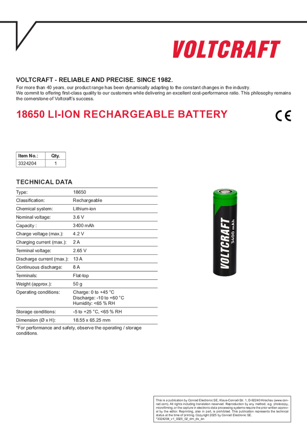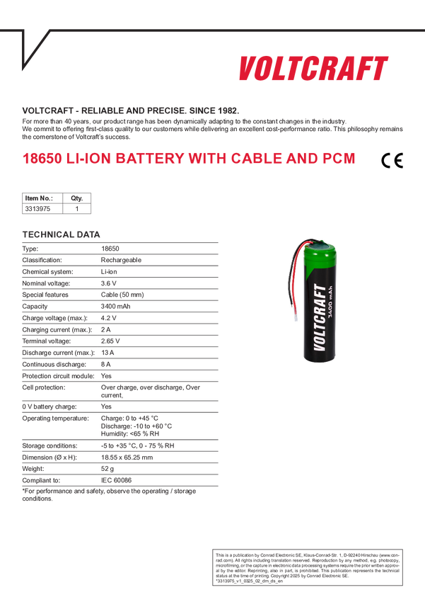 Akumulator specjalny VOLTCRAFT VC-16569875, litowe, 3400 mAh, 3.6 V, 1 szt.