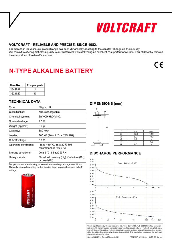 Bateria N/Lady VOLTCRAFT VC-16108100 alkaliczno-manganowe 1.5 V 10 szt.