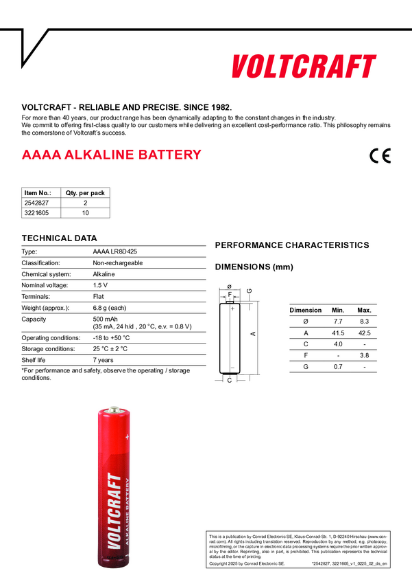 VOLTCRAFT VC-16108025 Bateria AAAA alkaliczno-manganowe 1.5 V 500 mAh 10 szt.