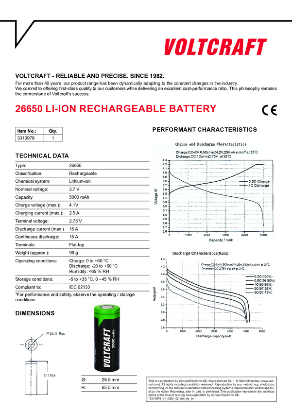 Akumulator specjalny VOLTCRAFT VC-16569890, litowe, 5000 mAh, 3.7 V, 1 szt.