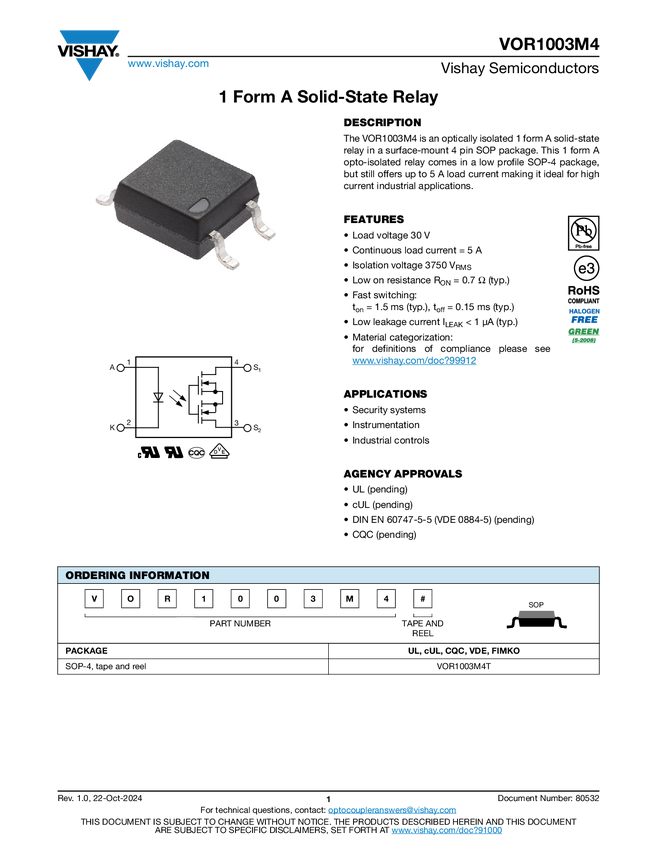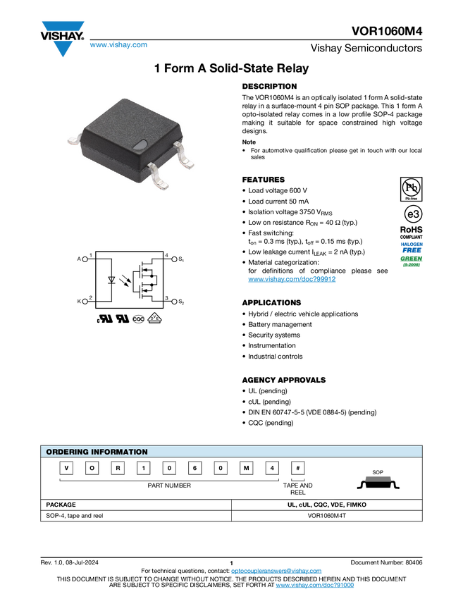 1500 V, 1 Form A Solid-State Relay