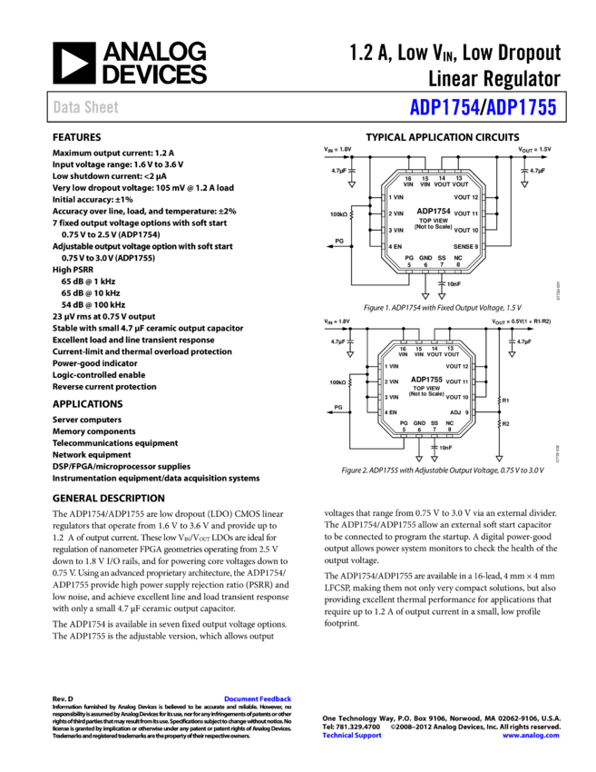 ADP1755: 1.2A Low-V, Adjustable-Vout LDO Linear Regulator